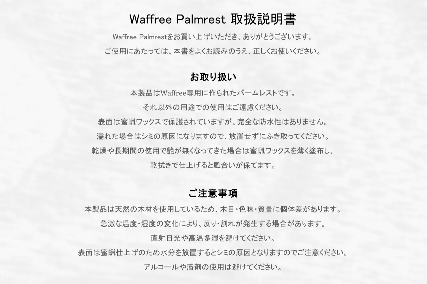 Waffree専用に設計された、ウォールナット削り出しパームレスト